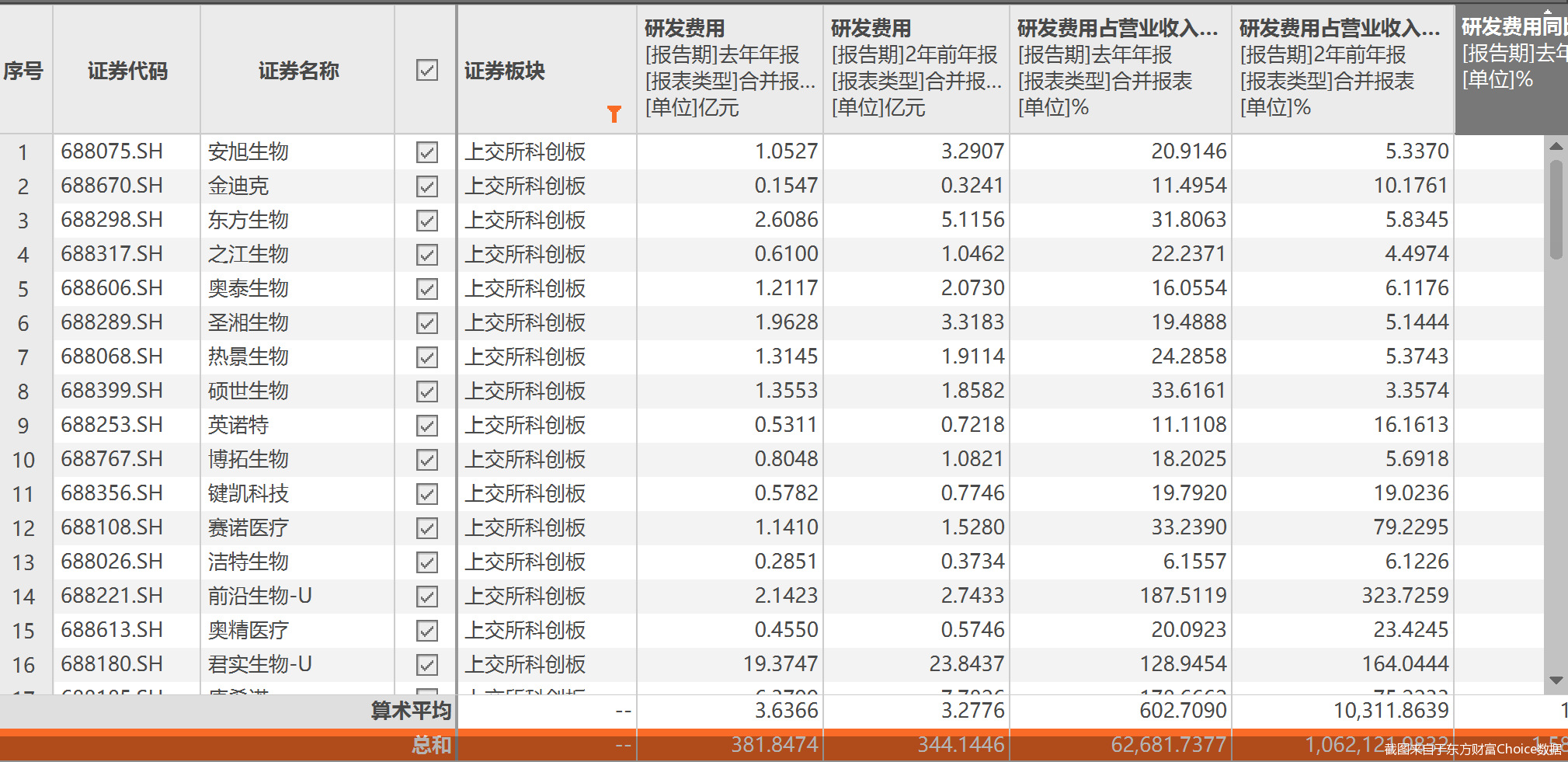 东方财富Choice数据显示,在中证行业分类(2021)中的医药卫生板块中,一共有105家科创板企业,2023年合计研发费用为381.85亿元,平均研发费用为3.64亿元。