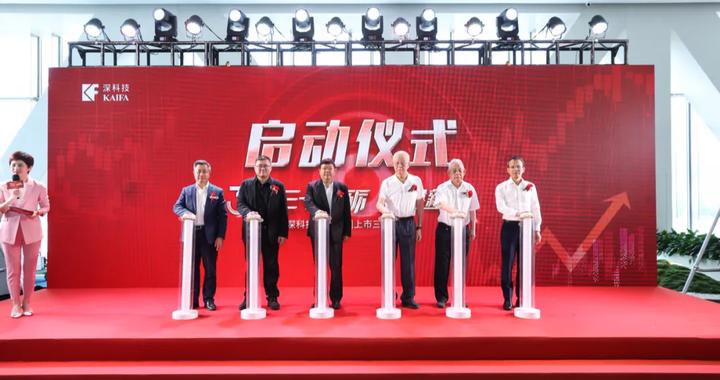 活动当天,集团公司、福田区政府、深圳上市公司协会等多方代表及领导嘉宾齐聚一堂。随着倒计时响起,集团公司党组成员、副总经理周进军,深圳市福田区副区长余枫,中国IT业教父王之,深科技老领导王志荣,深科技党委书记、董事长韩宗远,证券时报社常务副总编辑周一共同点亮了象征“三十而砺 砥进新程”的活动启动手印柱,标志着深科技新征程的开启。