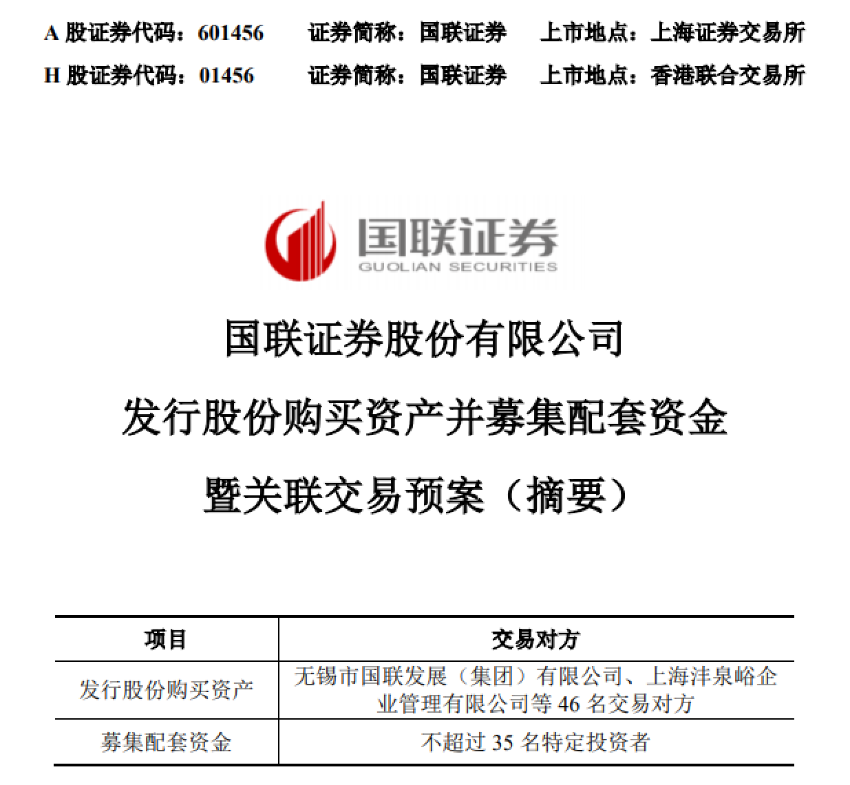 与此同时,国联证券宣布募集配套资金的上限不超过20亿元,具体的发行价格未定。