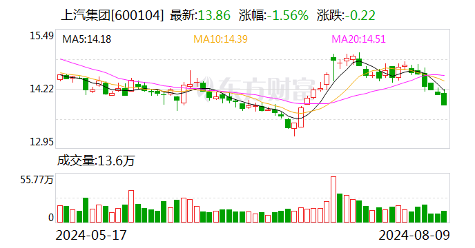 上汽集团是国内规模领先的汽车上市公司,但其7月在新能源汽车及整体的表现,均逊色于行业的发展态势。截至8月9日收盘,上汽集团总市值为1604亿元。