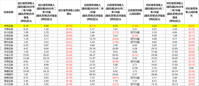 Choice数据显示,华林证券经纪业务净收入同比下滑近21%至2.22亿元;投行业务净收入同比下滑约79%至0.19亿元;自营业务净收入更是转亏0.11亿元,同比下滑132%。