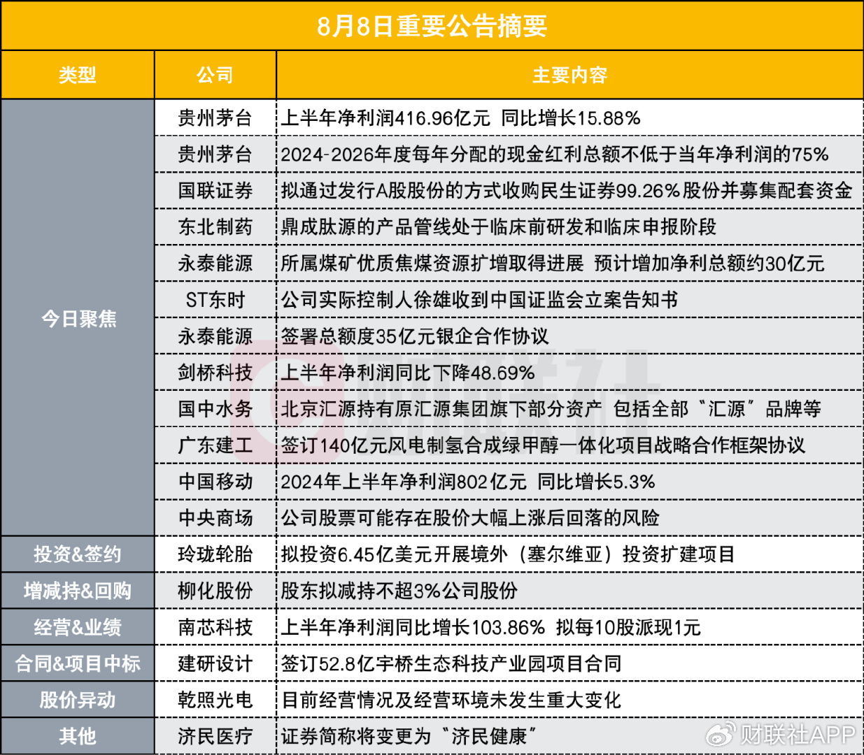 上半年净利超416亿元 贵州茅台半年报出炉|盘后公告集锦